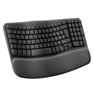 Teclado Logitech Wave Keys inalámbrico con Bluetooth, Logi Bolt y diseño ergonómico con reposamuñecas integrado.