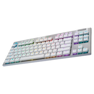 Teclado Logitech G915 TKL blanco inalámbrico con LIGHTSPEED y Bluetooth, diseño premium, RGB y alto rendimiento gaming.